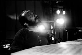 à g. : Eddie PALMIERI (percussions, piano, chant) , avec son...