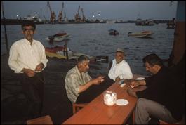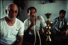 IRAN. Fishermen, smoking narguilé in the Ziakenar fishery. 1998....