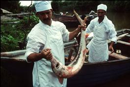 Zibakenar fishery, near Bandar-E-Anzali, emptying the caviar...