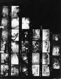 GB. ENGLAND. London. Oxford Street. Boys carrying gasmask looks...