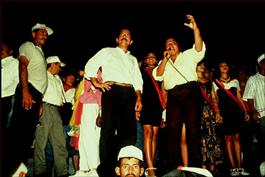 NICARAGUA. Chinandega, 1996. Daniel ORTEGA with former contra...