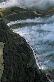 Italy.Sicily, Mount Etna:Lava eating up trees.