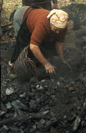 ITALY, Sicily, Mount Etna, preparation of te coal.