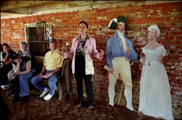 USA. Louisiana. Lafayette. Vermilionville. Two ladies dressed...