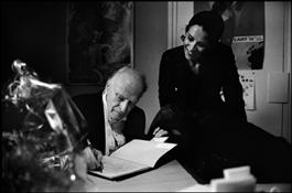 France. Rheims. Yehudi Menuhin signing an autograph for Isabelle...