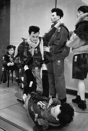FRANCE. Paris. 1991. Fighting boy store mannequins.
