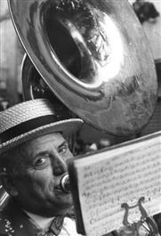 Italia; Ivrea: suonatore di banda al Carnevale con la battaglia...