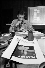 USA. Chicago, IL. 1966. Hugh HEFNER, Playboy founder, working...