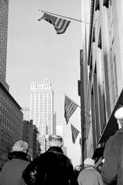 USA. NEW YORK. Manhatten. New Yorkers and the American flag....
