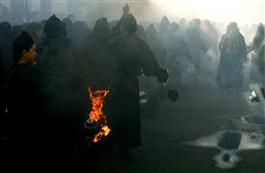 Sacatepéquez. Jocotenango. 1997. Incense burners during an Easter...