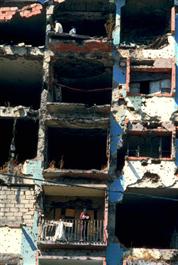 ANGOLA. War damaged buildings are homes to people displaced by...