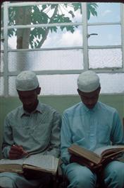 MAURITIUS. Port Louis. Students read from the Koran in the Dar...