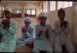 MAURITIUS. Port-Louis. 1992. Students pray in the Dar el Ulum...