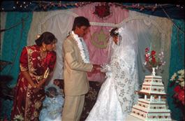 MAURITIUS. Port Louis. 1992. Muslim couple cuts the wedding cake....