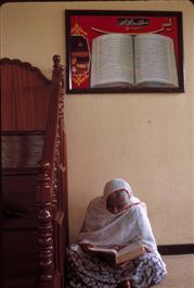 MAURITIUS. Port-Louis. 1992. Mosque. Woman reads the Koran in...