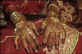 MAURITIUS. Port Louis. Muslim bride's hand, richly decorated...