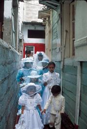 MAURITIUS. Port Louis. 1992. Muslim wedding,the bride leaves...