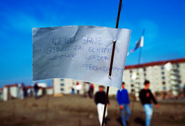 DDR, EAST GERMANY, 1990. Berliin Text-flag with handwriting:...