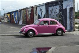 EAST GERMANY. 1990. Remanants of wall and a Trabant.