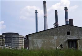 EAST GERMANY. 1990. Factory with a horse, outside of Berlin.