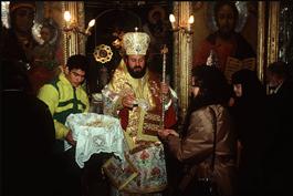 JERUSALEM,Communion with bread in Greek Orthodox Church of St...