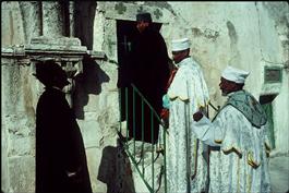 JERUSALEM. Ethiopian Orthodox Monastery on roof of Holy Sepulchre,remains...