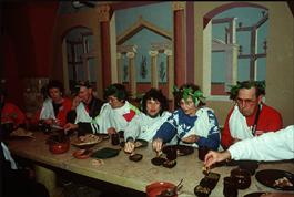 JERUSALEM,tourists dress in Roman togas,restaurant with Roman...