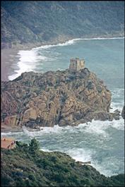 South Corsica. Porto. Genovese stone-watchtower (remants of occupation)...