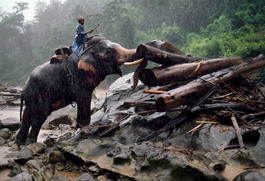 BURMA. Yangon. 1994. Elephants in Burma are used to harvest teak...