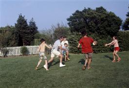 USA. 1967. Robert Kennedy playing football with his family.