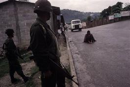 1999. Army road block in San Andres.