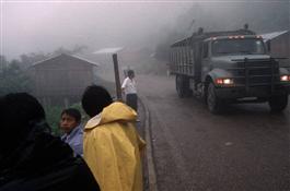 Polho. 1999. Zapatistas guarding township behind ropes to keep...