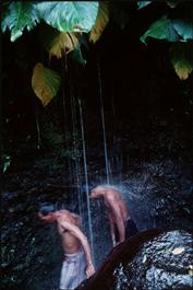 PHILIPPINES. Mount Banahao. 1995. Pilgrims under waterfall believed...
