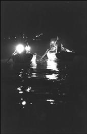 Italy, Sicily, Bagheria:Fishing by night with lampara.