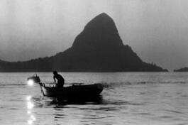 ITALY, Sicily, Porticello fisherman fishing with a lamp.