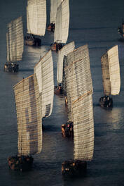 CHINA. Jiangsu. Nankin. Traditional junks on the Yangtze River....