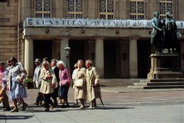 Germany, Weimar. Weimar. A group of elderly tourists on the square...