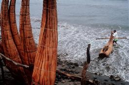 Peru. Fishing boats made out of reeds.