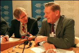 In the background, Egil MYKLEBUST Chairman (WORLD BUSINESS COUNCIL...