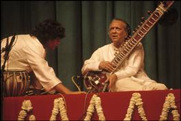 INDIA.Ravi SHANKAR giving a concert.