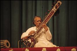 INDIA.Delhi.Ravi Shankar giving a concert.