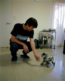 JAPAN. Mrs Fujikata a retired restaurant owner and Aibo the robot...