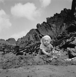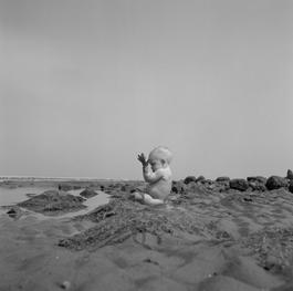 GB. Cornwall.Max NAYLOR MARLOW playing on the beach. 1994.