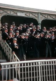 1957. Eton vs. Harrow cricket match at Lords Cricket field.