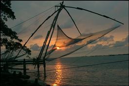 INDIA, Kerala, Cochin: fishermen fishing with nets in the lagoon....