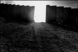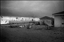 IDF watchtower and wall protect Neve Dekalim, a Jewish settlement...