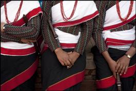 NEPAL. Bhaktapur. Young flutist girls in traditional costume....