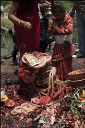 NEPAL. Bhaktapur. Dewali Puja of the Newari people. Their blood...