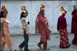 NEPAL. Kathmandu. Hanuman Durbar square. A procession of women,...