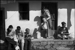 INDIA. 2. Uttarakhand. Rishikesh. Three widows, recognizable...